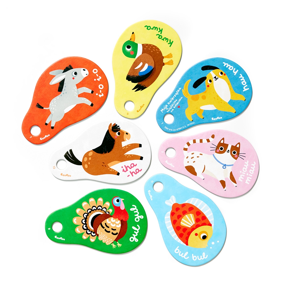 I bardzo ważny etap w nauce mowy! Ta poręczna książeczka na kółeczku ma 14 stron. Pełne humoru, soczyście kolorowe ilustracje przedstawiają urocze zwierzaki i inspirują do mnóstwa rozwijających zabaw. Oglądajcie książeczkę razem. Nazywaj zwierzątka i zachęć malucha do wydawania odgłosów. To świetny sposób na pobudzanie wyobraźni i wspólne spędzanie czasu. Do zestawu dołączyliśmy poradnik z pomysłami na zabawy z książeczką.