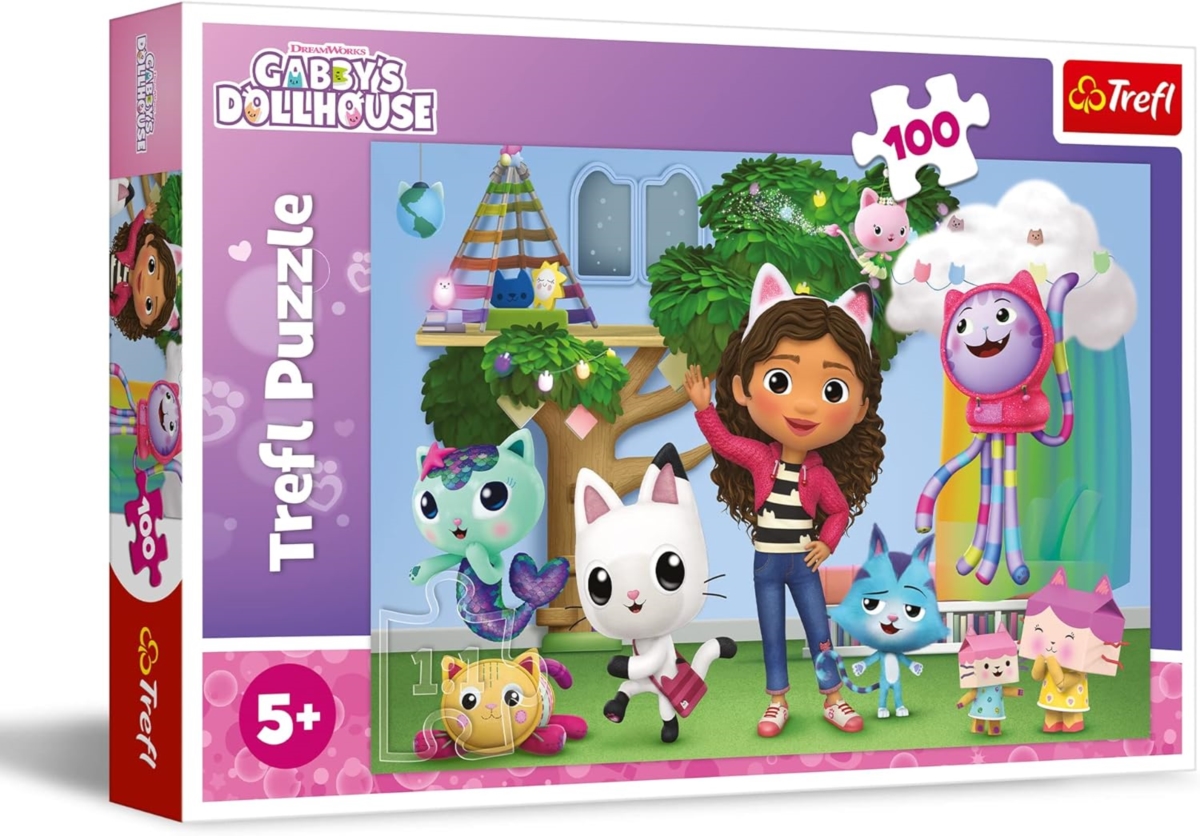 Koci Domek Gabi to 100-elementowe puzzle od Trefl z motywem bajki "Koci Domek Gabi". Puzzle przedstawiają Gabi i koty w pięknym domku.