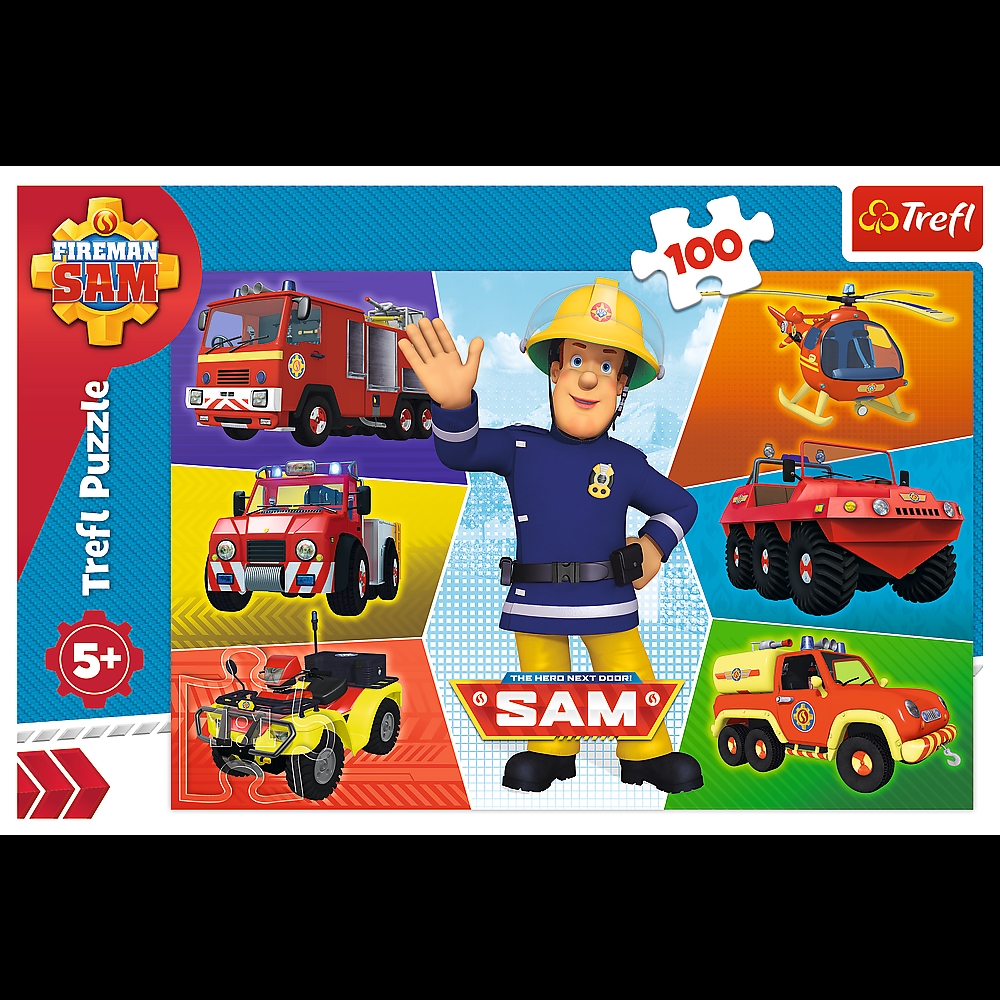 Puzzle składające się ze 100 elementów, zaprojektowaną z myślą o wszystkich fanach i fankach bajki Strażak Sam. Po ułożeniu układanki powstanie obrazek o wymiarach 410x275mm. Produkt został wykonany z wysokiej jakości materiałów, z zastosowaniem specjalnego kalandrowanego papieru odbijającego światło, co ułatwia układanie. Produkt został wyprodukowany w Polsce, a do produkcji zostały użyte materiały ekologiczne.