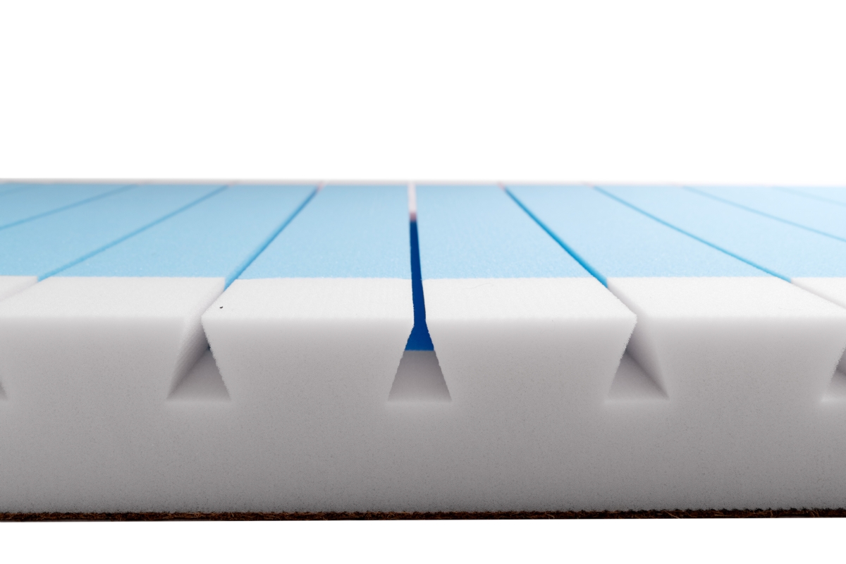 Trójkątne Poprzeczne Tunele Wentylacyjne: Znajdujące się od góry materaca, gwarantują optymalną cyrkulację powietrza, zapobiegając przegrzewaniu się dziecka.