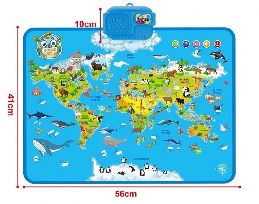 Interaktywna mapa zwierząt świata B/O 56x41cm color box rozm opak 47x4,4x19,2