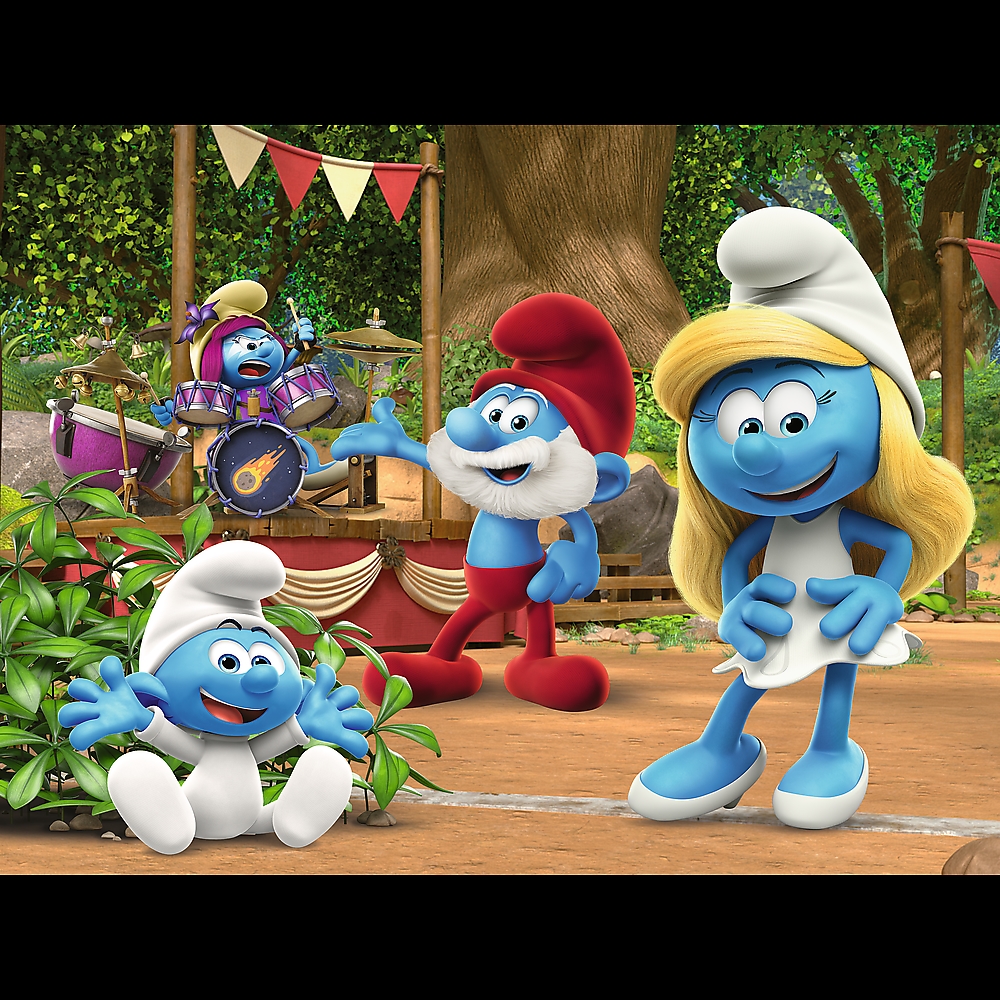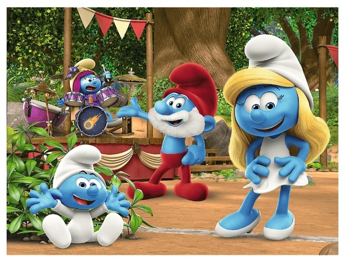Smerfetka i Smerfy to puzzle składające się z 30 elementów, zaprojektowane z myślą o małych, niebiskich stworzeń. Po ułożeniu układanki powstanie obrazek o wymiarach 270x200 mm.
