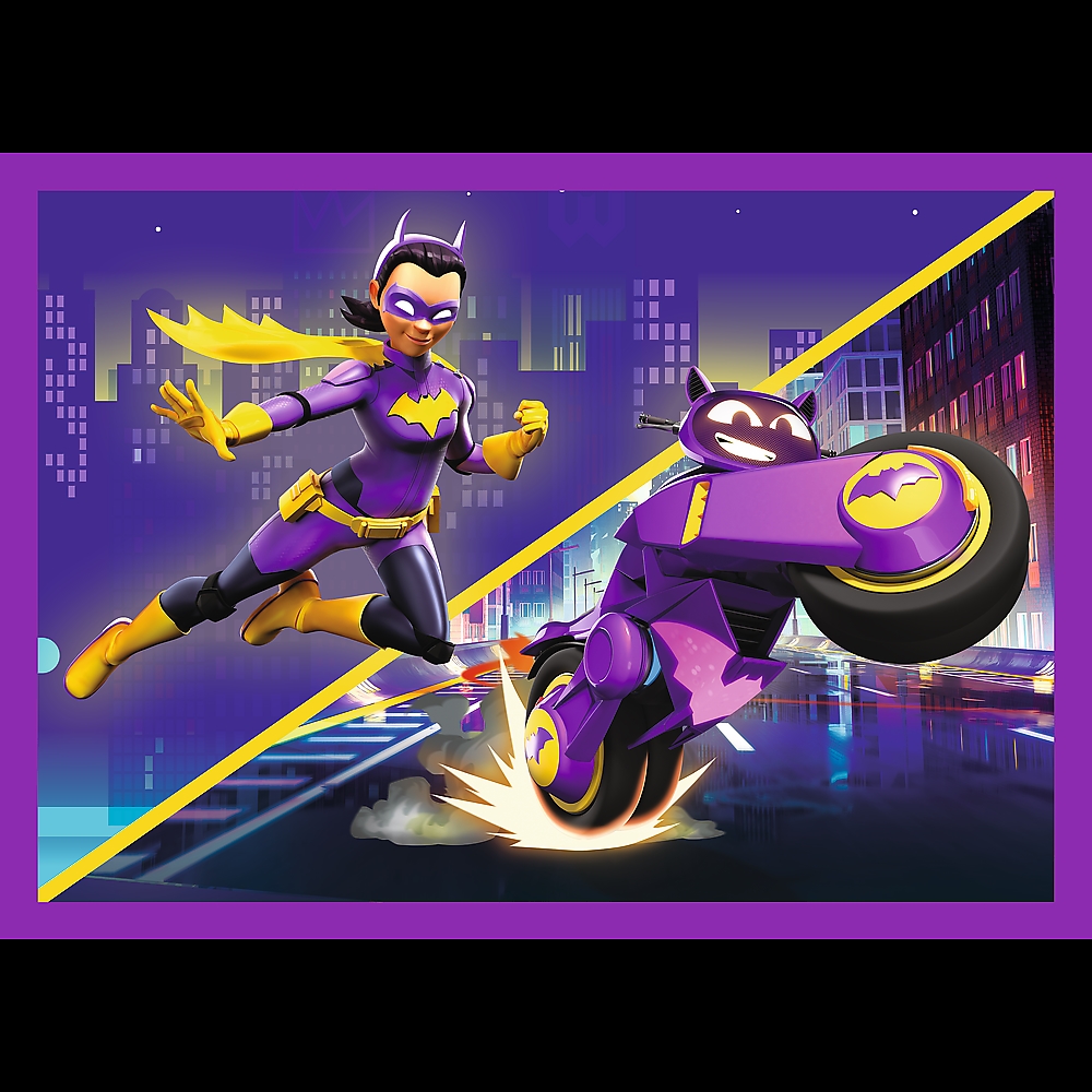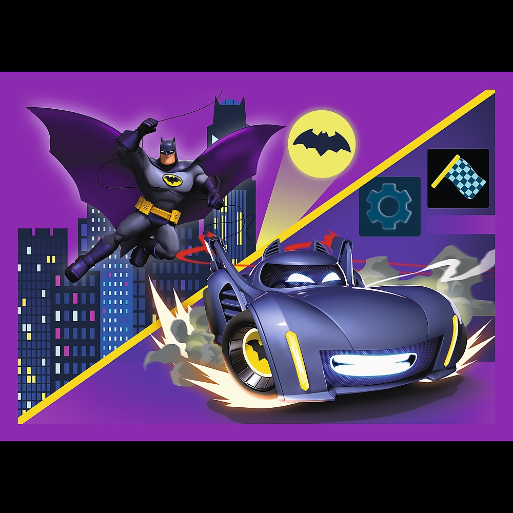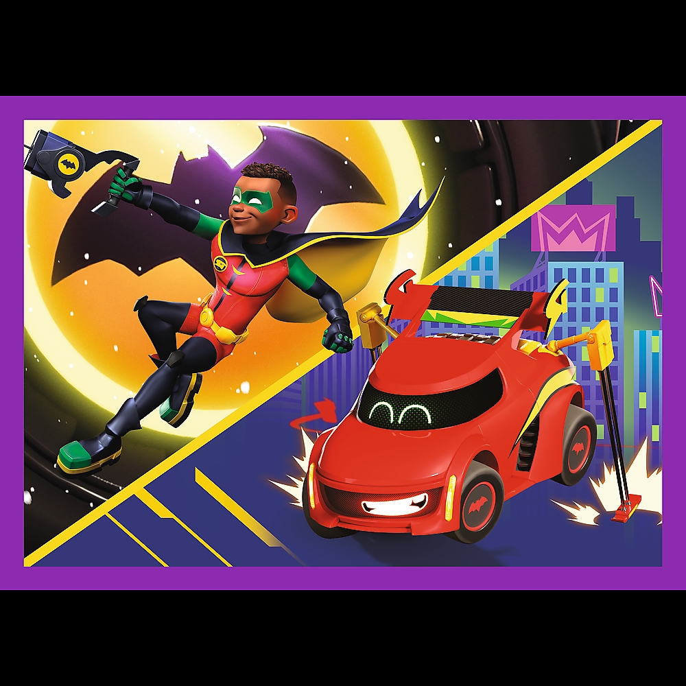 Poznaj Batwheels to 4 niezależne układanki dla dzieci, zaprojektowane z myślą o małych fanach przygód bohaterów serialu o kultowych pojazdach z uniwersum DC. Po ułożeniu puzzli powstaną 4 obrazki, z czego największy o wymiarach 285x205 mm. Zróżnicowana liczba elementów pozwala na zabawę zarówno młodszym, jak i nieco starszym dzieciom.