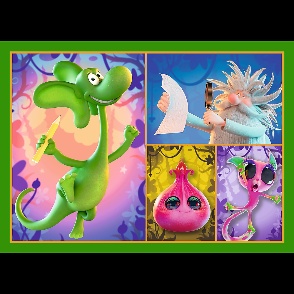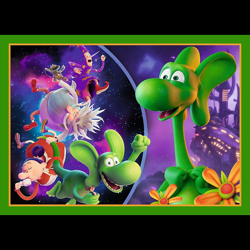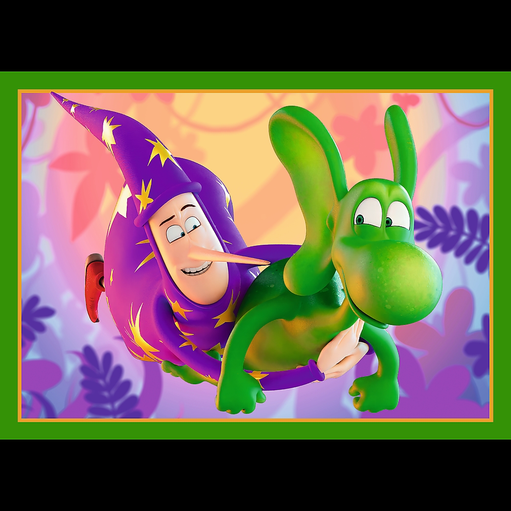 Świat Smoka Diplodoka to 4 niezależne układanki, zaprojektowane z myślą o małych fanach przygód bohaterów bajki Smok Diplodok. Po ułożeniu puzzli powstaną 4 obrazki, z czego największy o wymiarach 285x205 mm. Zróżnicowana liczba elementów pozwala na zabawę zarówno młodszym, jak i nieco starszym dzieciom.