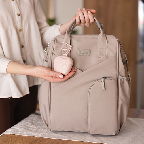 Łatwo włożysz i wyjmiesz smoczek przez specjalnie zaprojektowany otwór– nawet jedną ręką i bez odczepiania etui. Szybko chwycisz smoczek, by uspokoić płaczącego malucha.