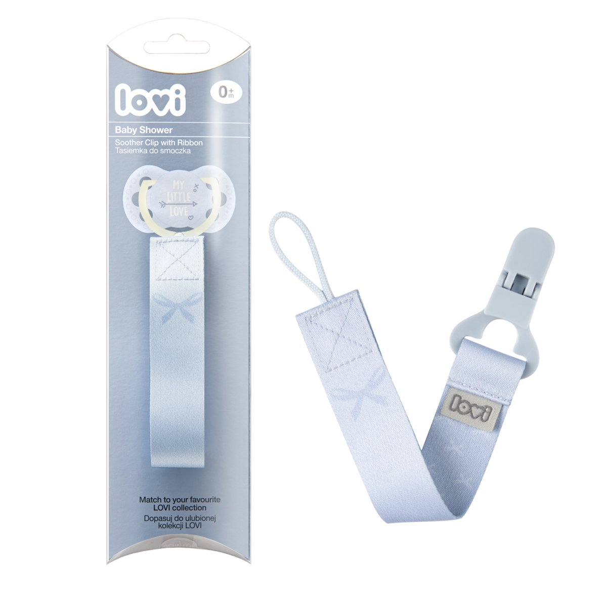 Smoczek znowu się zgubił? Tasiemka do smoczka LOVI Baby Shower Boy rozwiąże ten problem. Tasiemka do smoczka LOVI Baby Shower Boy jest niezastąpiona zwłaszcza podczas spacerów i podróży - gwarantuje, że smoczek się nie zgubi i nie upadnie na brudną powierzchnię, tylko dzięki tasiemce pozostanie zawsze w zasięgu rodzica i dziecka.