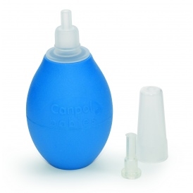 Aspirator w postaci gruszki, dzięki nowemu kształtowi dokładniej usunie wydzielinę z nosa u niemowląt i małych dzieci. Jest higieniczny i bezpieczny. Został wyposażony w dwie końcówki. Przed przystawieniem do noska, aspirator należy opróżnić z powietrza. Podczas oczyszczania jednej dziurki, drugą należy dziecku zablokować. Gruszki dostepne są w kilku wariatach kolorystycznych.