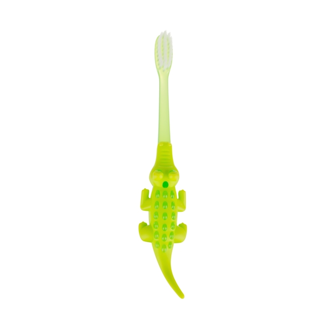 Szczoteczka przeznaczona jest do codziennej higieny jamy ustnej, przydatna również podczas masażu dziąseł, dla dzieci które nie posiadają jeszcze swoich ząbków. Główka wykonana jest z miękkiego i delikatnego włosia. Ciekawa rączka w kształcie krokodyla z pewnością zachęci dziecko do częstego mycia ząbków. Podczas regularnego używania wyrabiamy prawidłowy nawyk przy myciu zębów już u najmłodszych dzieci, tak aby jak najwcześniej przyzwyczaiło się do higieny jamy ustnej.