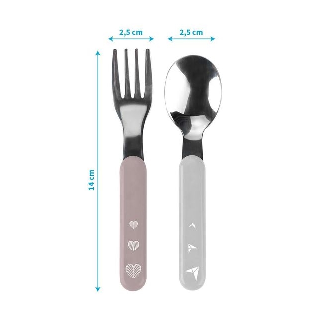 Zestaw sztućców wykonany ze stali nierdzewnej bardzo przydaje się podczas nauki samodzielnego jedzenia. Ich wielkość została dopasowana do małych rąk dziecka.
