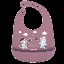 Canpol babies śliniak silikonowy z kieszonką BONJOUR PARIS bordowy