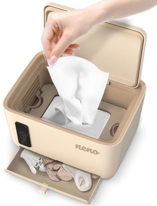 Podgrzewacz Neno Calme działa błyskawicznie, aby zapewnić chusteczkom suchym i nawilżanym idealną temperaturę w krótkim czasie