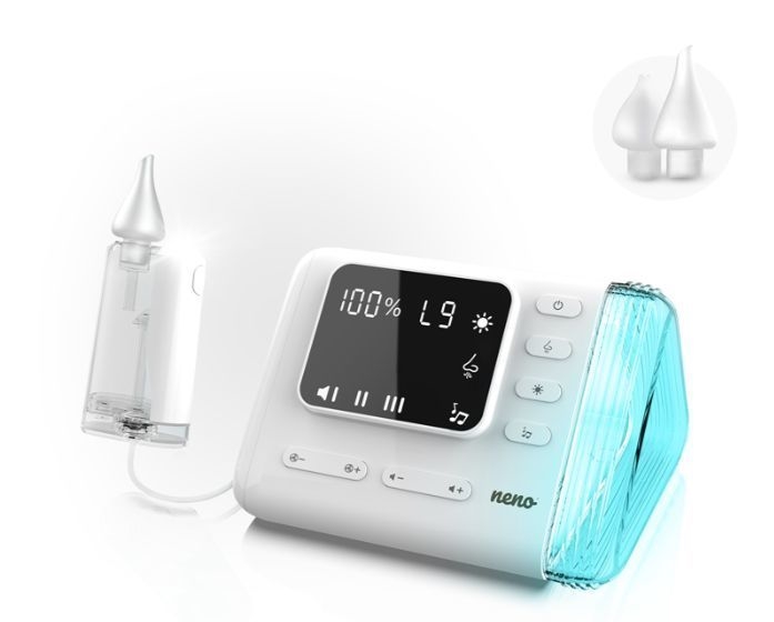 Neno Nariz odtwarza delikatne melodie oraz biały szum, które łagodzą napięcie i pomagają maluszkowi zrelaksować się podczas odciągania wydzieliny.