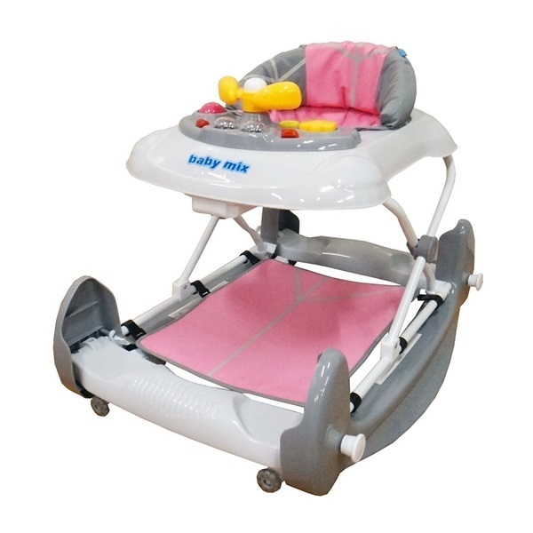 Multifunkcyjny chodzik dziecięcy Baby Mix z silikonowymi kółkami ułatwia naukę chodzenia. Chodzik został wyposażony w wygodne, specjalnie wyprofilowane siedzonko które zapewnia odpowiednią postawę dla kręgosłupa. Wielofunkcyjny panel zabawowy: z efektami świetlnymi, kierownicą z klaksonem, którą można obracać, kwiatek, grzechotkę, dwa przyciski, które grają melodie i dwa światełka. Piękny chodzik z zabawkami oczaruje małych odkrywców i pozwoli im bawić się jeszcze dłużej. Jeździk został wyposażony w specjalny system zabezpieczający przed wywrotką, który zapewni komfort i bezpieczeństwo maluchowi.
