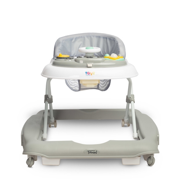 Timon to uniwersalny chodzik z funkcją bujaczka. Wyróżnia się ciekawą kolorystyką i komfortem użytkowania. Dzięki wyjątkowej konstrukcji można go szybko zamienić w bujaczek, łatwo wyregulować wysokość siedziska oraz złożyć po zakończonej zabawie. Chodzik jest wyposażony w panel dźwiękowy na baterie oraz manualne zabawki, które gwarantują radosną zabawę.