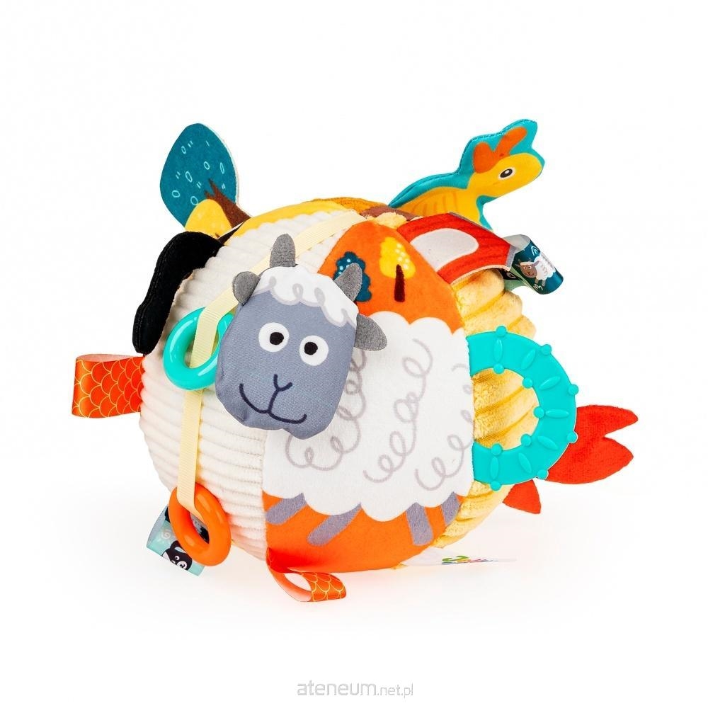 Zwierzakowa piłeczka pełna sensorycznych niespodzianek zabawi najmłodszych na wiele sposobów. Piłkę zdobią podobizny zwierzaków oraz bezpieczne lusterko do samopoznania bobasa. Dodatkowo, znajdziemy tu także wiele odstających elementów, stworzonych z myślą o aktywizowaniu dziecka i rozwijaniu jego zdolności poznawczych, a wśród nich piszczącą głowę owieczki, szeleszczącą kaczuszkę czy ruchome pierścienie do przesuwania. Wewnątrz piłeczki ukryty jest dzwoneczek, dzięki czemu przy potrząsaniu zabawka wydaje wesoły dźwięk.