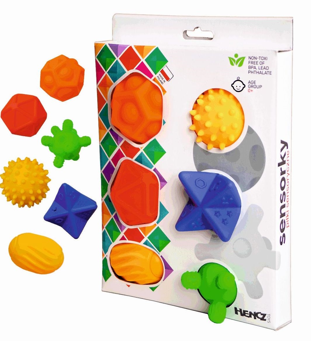 Nasz nowy zestaw (6-pak) dzięki zróżnicowanej fakturze poszczególnych elementów dostarcza dziecku wyjątkowych wrażeń czuciowych. Bogata kolorystyka rozwija zmysły naszych milusińskich , a zróżnicowane kształty i figury zachęcają do kreatywnej zabawy.