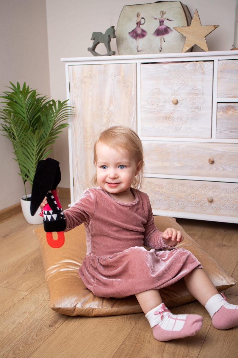 Mięciutki, materiałowy i kontrastowy gryzak Króliczka z piszczkiem od Moms care został stworzony z myślą o najmłodszych. W jednej zabawce zawarliśmy cały komplet doznań, dostosowany specjalnie do potrzeb Twojego dziecka. Do uszycia gryzaków używamy certyfikowanych tkanin o różnej strukturze. Dzięki temu dziecko poznaje świat i rozwija zmysł dotyku. Nie zapominamy także o prawidłowym rozwoju zmysłu wzroku. Przewaga mocno kontrastujących ze sobą kolorów rozwija prawidłowe postrzeganie barw.