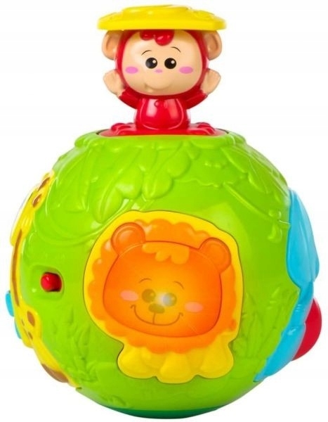 Aktywizuje zabawę dziecka dzięki różnym niespodziankom. Naciśnij lwa, a wyskoczy małpka. Lew zaświeci i wyda śmieszne odgłosy. Przesuwaj koraliki żyrafy, obracaj kulą słonia.