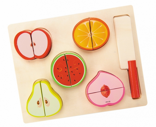 Zgrabny zestaw drewnianych owoców i warzyw o bogatej, urozmaiconej kolorystyce to idealny wybór dla dzieci, które lubią bawić się w kuchnię lub w sklep. Produkt zapewni dziecku mnóstwo zabawy, a dodatkowo pomoże w nauce rozpoznawania różnych gatunków warzyw i owoców, zarówno z rodzimego rynku, jak i egzotycznych. Każdy element posiada specjalne rzepy po wewnętrznej stronie. Pozwalają one na bezpieczne krojenie oraz umożliwiają ponowne połączenie połówek owoców oraz warzyw.