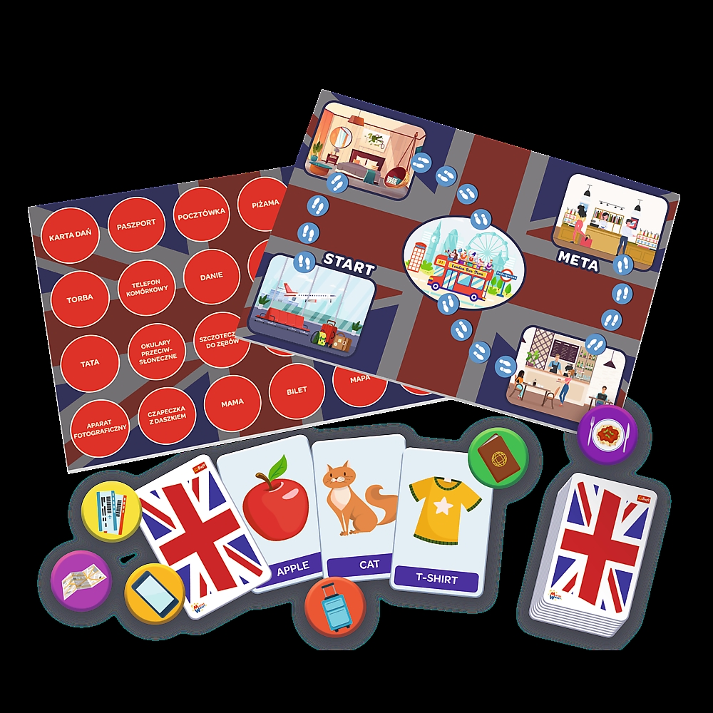 Pięknie ilustrowaną planszę, żetony i barwne karty ze słówkami możesz używać w formie układanki, quizu i popularnego memos.