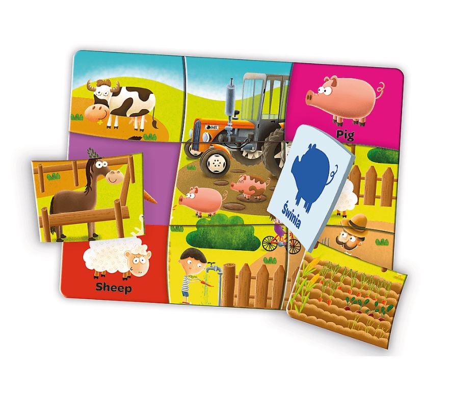 Angielski dla przedszkolaka to gra edukacyjna dla dzieci, dzięki której Mali Odkrywcy zapoznają się ze słownictwem najbliższym ich zainteresowaniom. Jakich słów użyjesz, żeby porozmawiać po angielsku z rówieśnikami na placu zabaw? Co powiesz do kierowcy autobusu? Pięknie ilustrowane edupuzzle i tematyczne planszetki to doskonałe towarzystwo do stawiania pierwszych kroków w nauce angielskiego! Wciągające zadania sprawią, że podczas wesołej zabawy poznasz podstawy angielskiego!