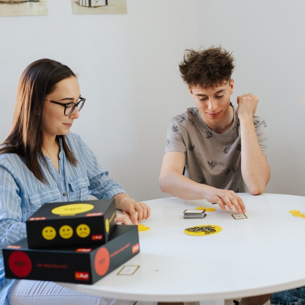 EGO Emocje to fascynująca gra towarzyska, której celem jest odgadnięcie emocji uczestników i zebranie jak największej liczby małych żetonów.