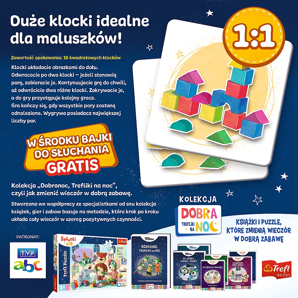 Kolekcja Dobranoc, Trefliki na noc, czyli jak zmienić wieczór w dobrą zabawę. Mój pierwszy memos to popularna gra dla najmłodszych, która ćwiczy pamięć i spostrzegawczość.