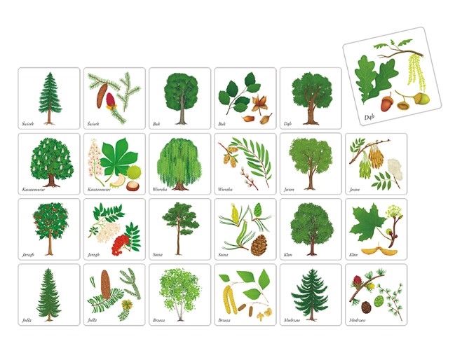 Sosna, jodła, dąb, brzoza – to tylko kilka z rodzajów drzew występujących w Polsce. Czy znasz i wiesz, jak wyglądają drzewa oraz ich liście, kwiaty i owoce? Czy potrafisz je rozpoznać na spacerze w parku lub lesie? Ćwicz swoją pamięć i poznaj świat naszej niesamowitej i różnorodnej przyrody!