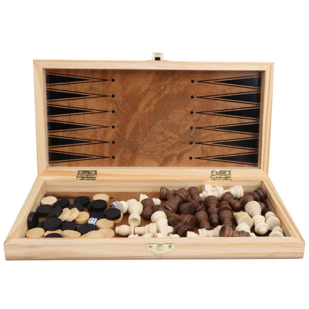 Ponadczasowy zestaw 3w1 - ta klasyczna towarzyska gra nigdy się nie znudzi. Pięknie i solidnie wykonana szachownica zachwyci każdego gracza. Poręczna kaseta zamykana jest na zatrzask, po zamknięciu zajmuje niewiele miejsca i łatwo się ją przechowuje. Drewniane szachy to także świetna propozycja prezentu dla miłośników gier planszowych i fanów szachów. Tak elegancki prezent, docenią zarówno amatorzy, jak i profesjonaliści.