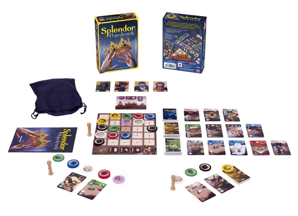 Splendor: Pojedynek to nowa odsłona popularnej gry ekonomicznej, w pełni dostosowana do potrzeb planszówkowych par i duetów. Zawiera zmodyfikowany system dobierania znaczników klejnotów oraz zupełnie nowe karty z dodatkowymi umiejętnościami i premiami. Dzięki nim dwuosobowe rozgrywki będą jeszcze bardziej wymagające i ekscytujące!