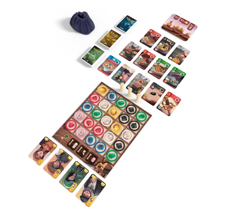 - Specjalna plansza, na której wykładamy znaczniki klejnotów oraz związane z nią dodatkowe zasady sprawiają, że także ten element gry nabiera strategicznego charakteru. Od teraz nie tylko możemy podbierać przeciwnikowi potrzebne kolory, ale też ograniczać jego możliwości w ich łączeniu!