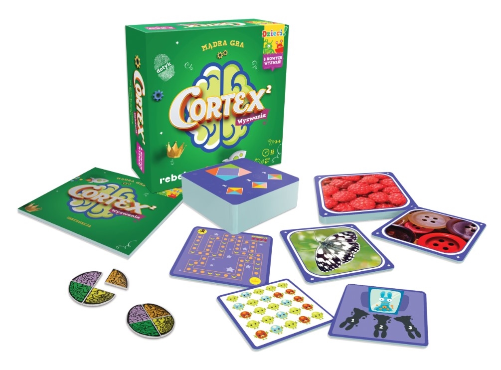 W Cortex dla Dzieci 2 od 2 do 6 graczy będzie rywalizować ze sobą, szybko zgadując odpowiedzi na 8 rodzajów wyzwań, które rozwijają różne funkcje ludzkiego mózgu. Za prawidłowe odpowiedzi otrzymają części układanki, a pierwsza osoba, która zdobędzie wszystkie 4 części i ukończy swój obrazek mózgu, zostanie zwycięzcą!