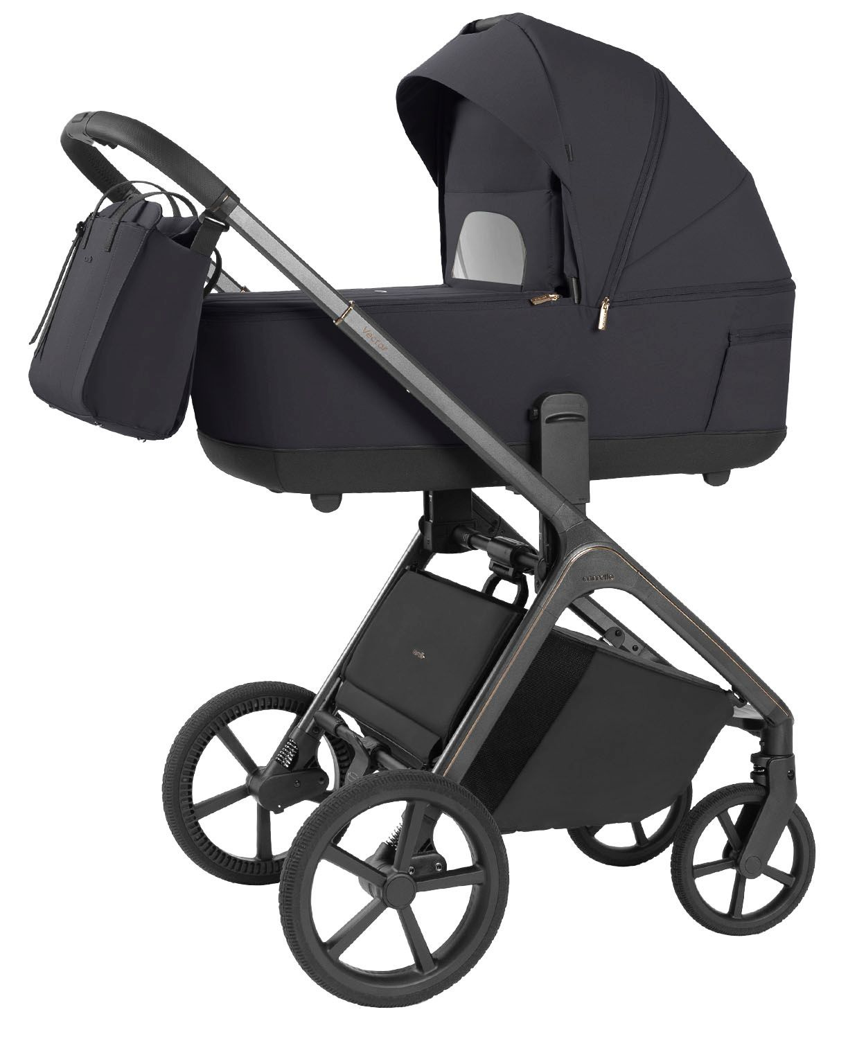 Gondola jest wykonana z połączonych materiałów. Solidna podstawa i korpus z wielowarstwowego tekstyliów tworzą komfortowy mikroklimat wewnątrz gondoli. Taka konstrukcja pozwala na zmniejszenie wagi produktu i składanie gondoli.
