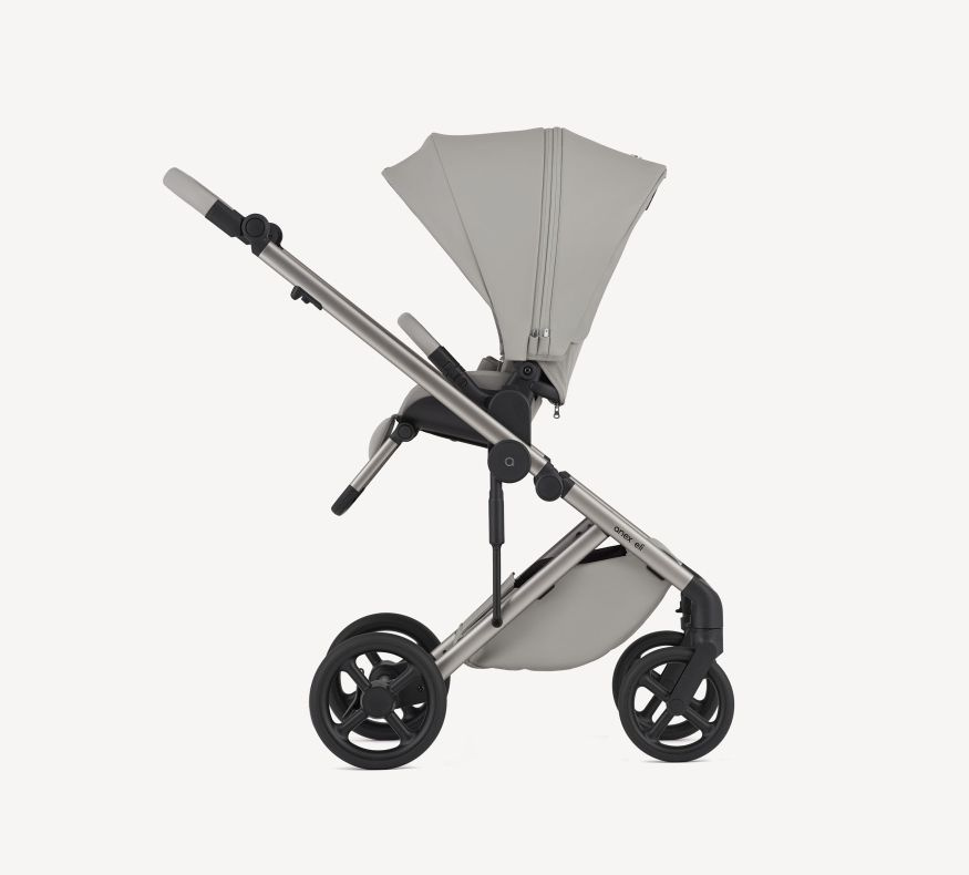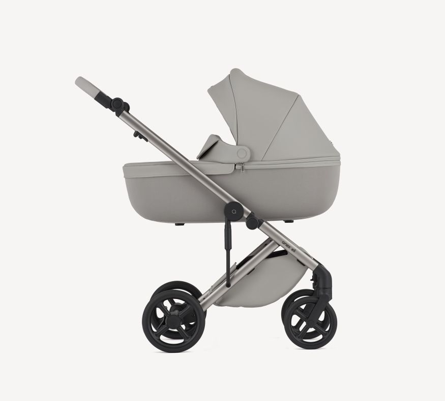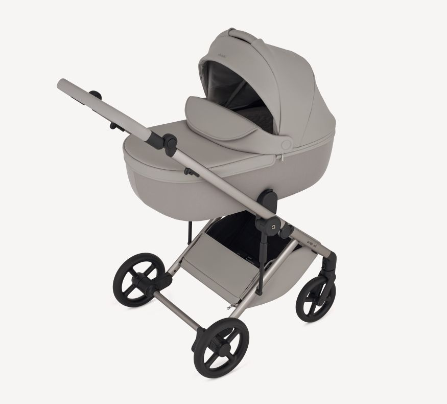 Gondola EPP z naturalnymi tkaninami i materacem Sorona tworzą bezpieczną i wygodną przestrzeń dla dziecka, podczas gdy koła z nową technologią bezobsługową zapewniają zawsze płynną jazdę.