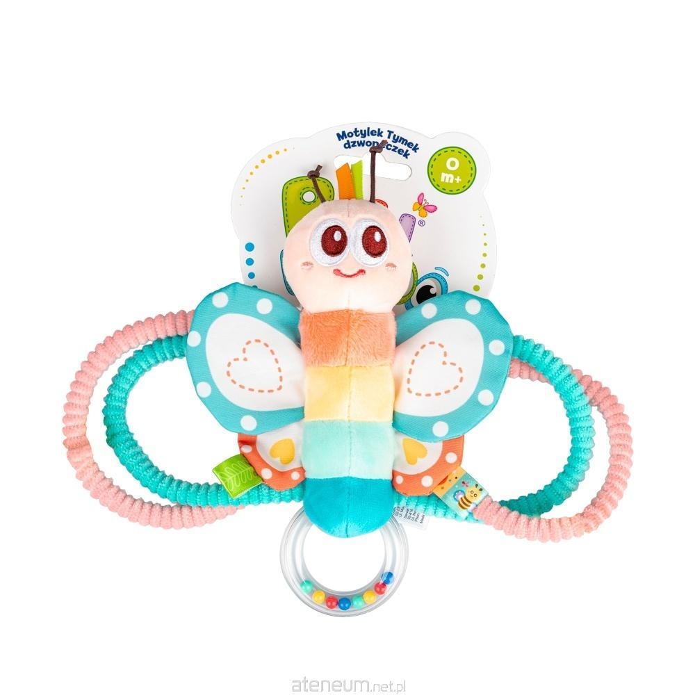 Tymek, szeleszcząc wesoło, zaprasza do sensorycznej zabawy! Kolorowy motylek wyposażony został w kryty dzwoneczek, który wydaje uroczy dźwięk przy każdym potrząśnięciu zabawką. Kolorowe, fakturowane obręcze, które zdobią Tymka są elastyczne i dostosowane do małych rączek, co ułatwia najmłodszym chwytanie zabawki. Jakby tego było mało, Motylek posiada także grzechoczący element, a jest nim przezroczysty krążek, wypełniony koralikami. Zabawka uszyta została z materiałów o zróżnicowanych fakturach, co pozwala rozwijać zdolności poznawcze malucha, zachęcając go do odkrywania świata za pomocą zmysłów.