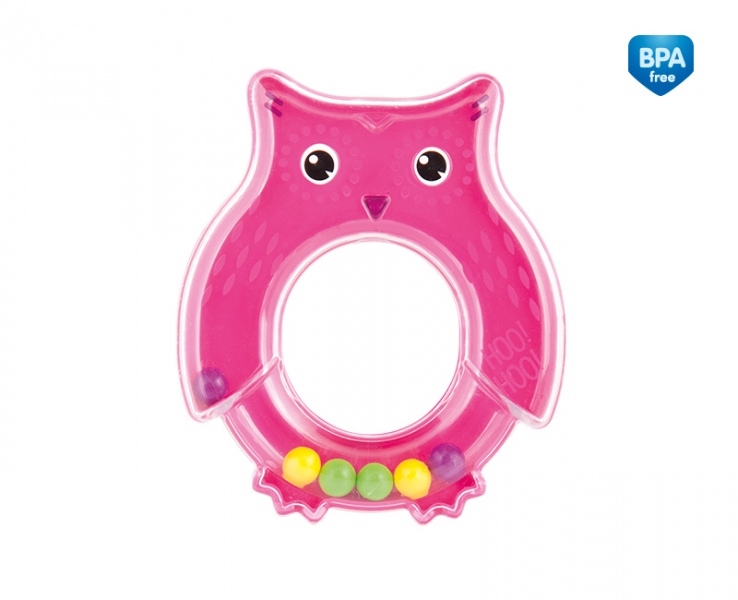 Grzechotka SOWA sprawdzi się jako pierwsza zabawka dla maluszka, ponieważ jest lekka i poręczna. Dziecku łatwo chwycić ją w rączkach. Ma delikatnie zaokrąglone kształty. Przezroczyste części zabawki zawierają małe, kolorowe elementy, które poruszają się podczas zabawy i wywołują przyjemny dźwięk grzechotania. Zachęca dziecko do ćwiczeń i zabawy, stymulując jego rozwój psychomotoryczny. Przeznaczona dla dzieci w wieku 0m+.
