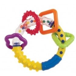 Lekka i poręczna grzechotka KOLOROWE KSZTAŁTY sprawdzi się jako pierwsza zabawka dla malucha. Dziecku łatwo chwycić ją w rączkach. Grzechotka jest kolorowa, posiada ruchome elementy o różnych fakturach, które zachęcają malucha do ćwiczeń i zabawy, stymulując jego rozwój psychomotoryczny. Ma delikatnie zaokrąglone kształty. Przezroczyste części zabawki zawierają małe, kolorowe elementy, które poruszają się podczas zabawy i wywołują przyjemny dźwięk grzechotania. Przeznaczona dla dzieci w wieku 0m+.