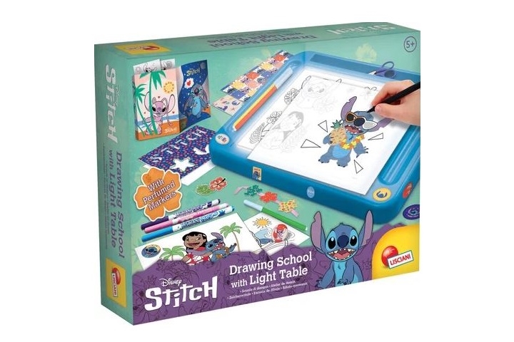 Naucz się rysować ze Stitchem! Ta szkoła rysowania to bogaty i zabawny zestaw do rozwijania zdolności manualnych, kreatywności i wyobraźni. podświetlanej tablicy LED tworzenie rysunków i ożywanie postaci z filmu Disneya będzie jeszcze łatwiejsze. Przechowuj swoje dzieła w specjalnej książeczce i baw się ze Stitchem!