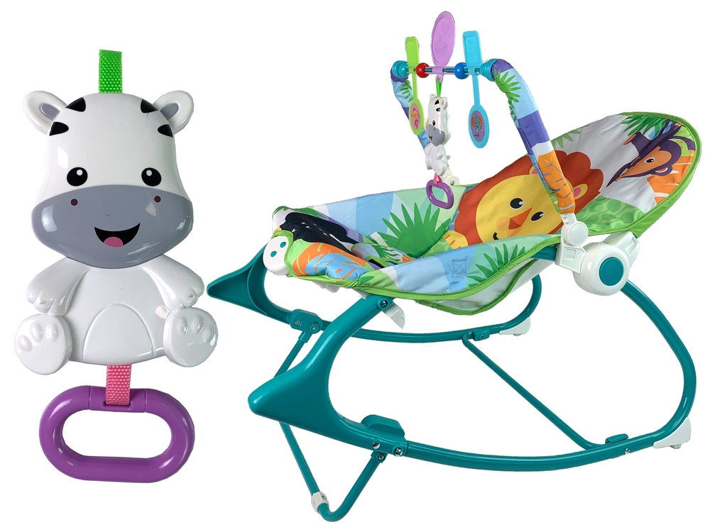 Leżaczek dzięki intuicyjnej obsłudze, a przede wszystkim prostej konstrukcji, może być używany na różne sposoby. Z powodzeniem wykorzystasz go jako bujaczek dla maluszka, a także jako klasyczny fotelik dla dziecka, który rozłożysz w każdych warunkach. Wielofunkcyjność siedziska dla malucha sprawia, że możecie zabrać go ze sobą wszędzie, a w zależności od sytuacji zmienić jego zastosowanie. Dodatkowo nad siedziskiem znajduje się okrąg z przyjaznymi małymi zwierzątkami. Zebra po pociągnięciu za rączkę odtwarza muzykę, a boczne wiszące kolorowe zabawki przypominające zwierzątka stymulują zmysł dziecka.