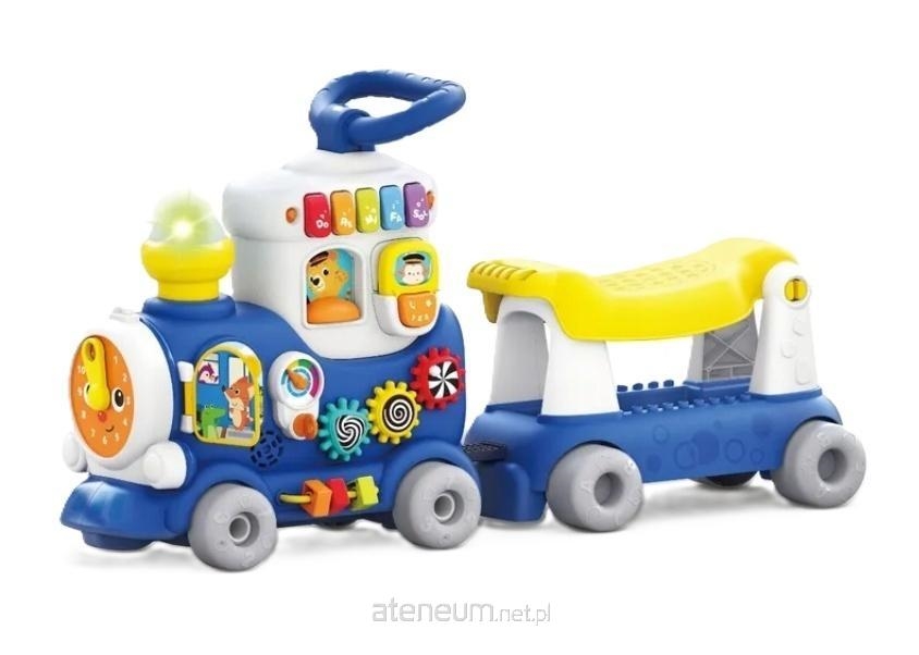Kto ma ochotę na muzyczną podróż z udziałem aktywnych elementów, światełka i zręcznościowych niespodzianek? Niebieściutki jeździk – pociąg zaprasza na przejażdżkę, oferując aż 4 różne sposoby zabawy: po pierwsze, usiądź wygodnie na wagoniku i odpychaj się nóżkami (jeździk), po drugie, odczep wagonik i prowadź ciuchcię, idąc za nią (pchacz), po trzecie, ciągnij za sobą odczepiony wcześniej wagonik i wreszcie po czwarte, usiądź przy ciuchci i odkryj wszystkie niespodzianki, jakie w sobie kryje. Znajdziemy tu zegar, ruchome koraliki, książeczkę, kolorowe trybiki, a nawet pianinko! Pociąg wyposażony został w melodie i wesołe dźwięki, które umilą zabawę.