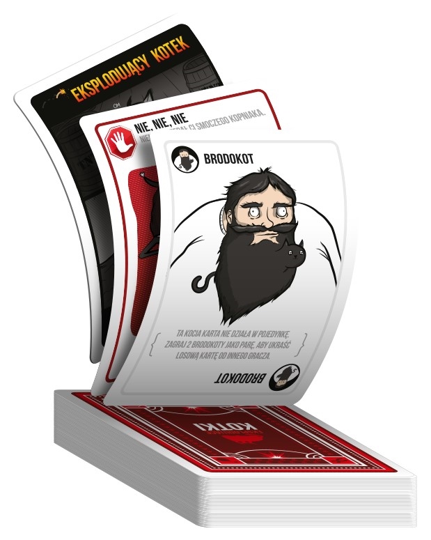 Spróbuj swoich sił w tej wysoce strategicznej, w pełni bezpiecznej wersji rosyjskiej ruletki! Podczas rozgrywek gracze co turę dobierają po jednej karcie, aż do momentu, gdy któryś trafi na puchatą bombę. Ów nieszczęśnik rozlatuje się na tysiąc kawałeczków i wypada z gry. Pozostałe karty służą do unikania eksplodujących kotków lub łagodzenia ich wybuchowego temperamentu.