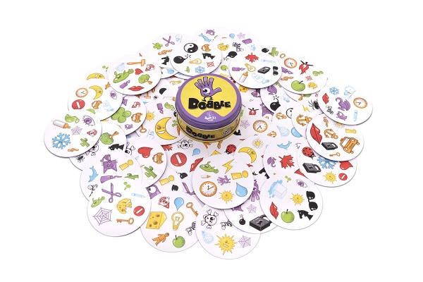 Dobble to rozrywka absolutnie dla każdego – gra nadaje się zarówno do zabawy z dziećmi, jak i na imprezy dorosłych. 55 kolorowych kart zamkniętych jest w solidnej, metalowej puszce, dzięki czemu łatwo zabrać Dobble ze sobą i grać absolutnie wszędzie: w poczekalni u lekarza, w pociągu, na wycieczce…