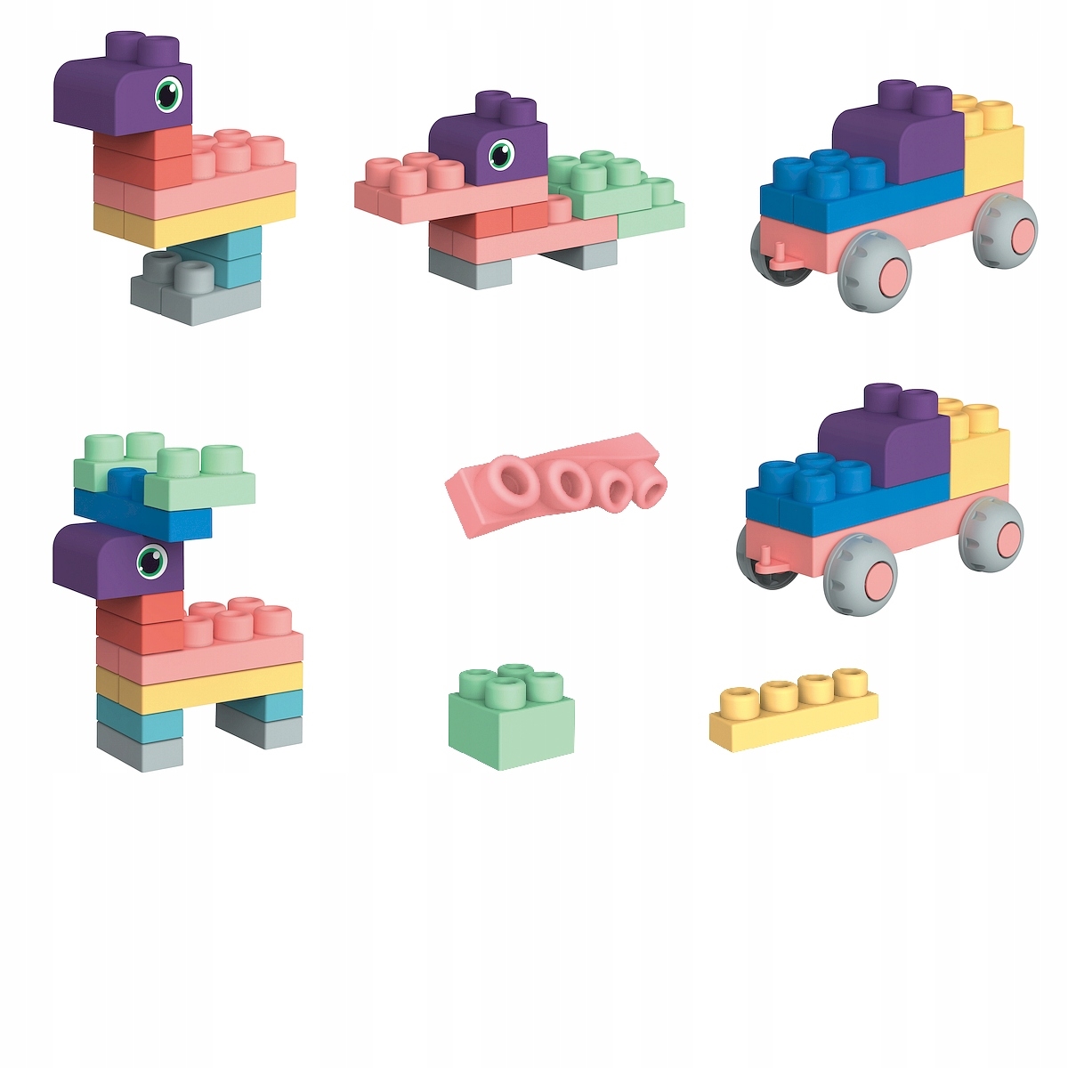 Wspomaga rozwój zręczności: ćwiczenia chwytania, małej i dużej motoryki,opakowanie zawiera 20 miękkich klocków.