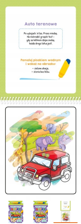 Malowanka z pisakiem wodnym Autka” to fantastyczna zabawa dla małych miłośników samochodów. Książeczka zawiera rysunki aut, które dzieci mogą malować specjalnym pisakiem wodnym. Po wyschnięciu kolory znikają, umożliwiając wielokrotne malowanie i zabawę. Bezpieczna i łatwa w użyciu, doskonała do rozwijania kreatywności i umiejętności manualnych maluchów.