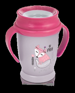 Kubek LOVI 360° Drink Master 250 ml Indian Summer Girl został wyposażony w profilowane uchwyty, które wygodnie jest trzymać w małych rączkach.