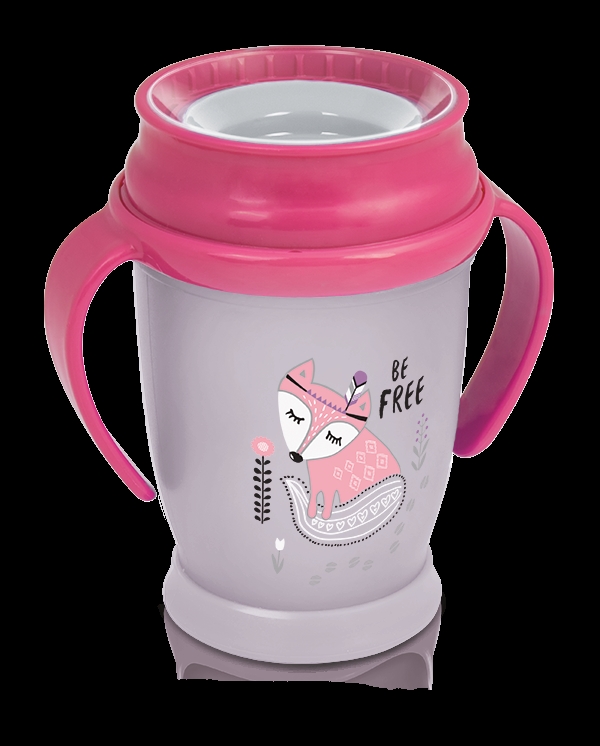Wybierz kubek 360° LOVI Drink Master 250 ml Indian Summer Girl, dzięki któremu ta nauka nie będzie skutkowała rozlewaniem picia.