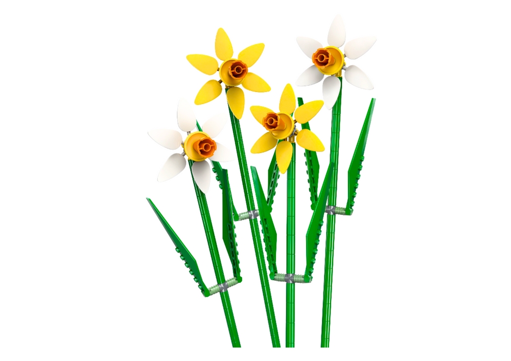 Stwórz kompozycję kwiatową — żonkile można łączyć z innymi zestawami kwiatów (sprzedawanymi osobno), dzięki czemu z łatwością stworzysz spersonalizowany bukiet LEGO®