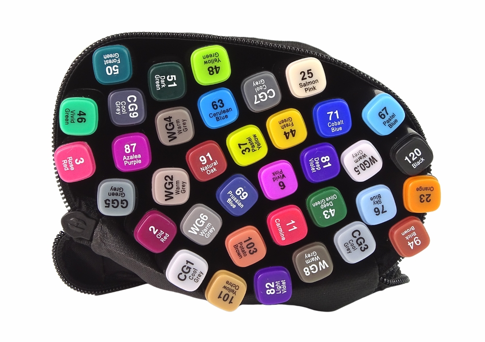 Nasączony tuszem wkład wykonany został w sposób gwarantujący równomierną dystrybucję tuszu - bez plam wysychania i wylewania! Zestaw 36 markerów w różnorodnych i nasyconych barwach to propozycja dla wszystkich, którzy rozpoczynają swoją przygodę z rysunkiem oraz dla tych, którzy rysują na co dzień. Doskonała pigmentacja alkoholowego tuszu zawartego w pisakach gwarantuje, że wykonane nimi rysunki będą wyraźne, nasycone i długo nie zblakną. Markery stosowane na przeznaczonym do markerów alkoholowych papierze nie przemaczają kartki, dają się w łatwy sposób nakładać i mieszać.