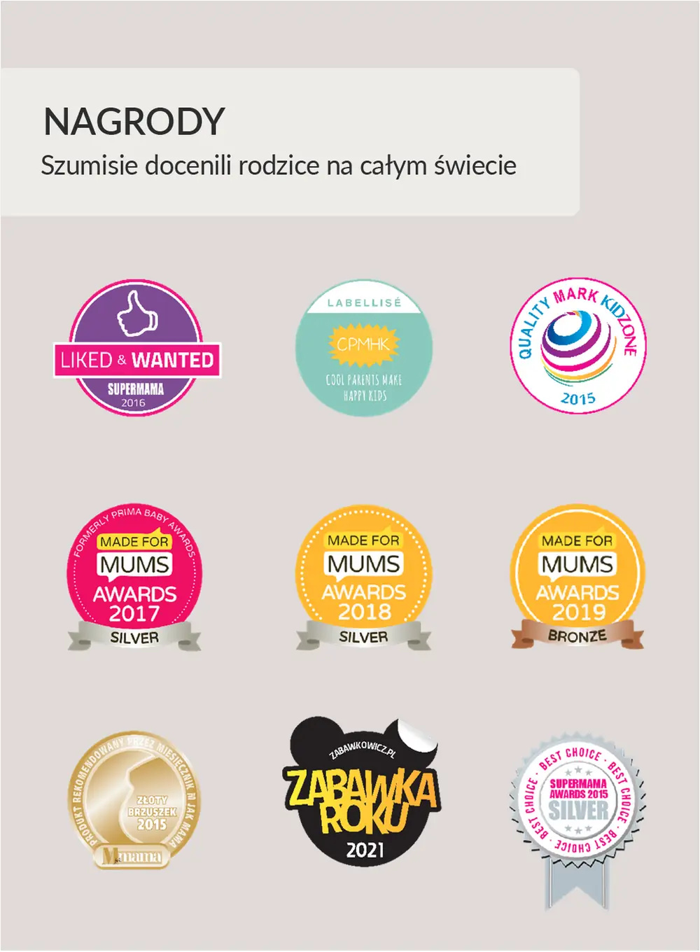 Nowonarodzone maluszki uwielbiają zasypiać przy Szumisiu, bo jego dźwięk jest podobny do tego, co pamiętają z brzuszka mamy. Kojarzy im się z ciepłem i bezpiecznym światem. Uspokajają się, wyciszają i szybciej zasypiają.