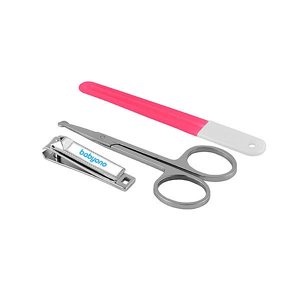 Kompletny zestaw do pielęgnacji paznokci niemowląt. Bezpieczne nożyczki z zaokrąglonymi końcówkami zapobiegają skaleczeniu. Zarówno nożyczki jaki i cążki wykonane są z hignienicznej stali nierdzewnej. W zestawie znajduje się także pilniczek do delikatnego wygładzania nierówności.